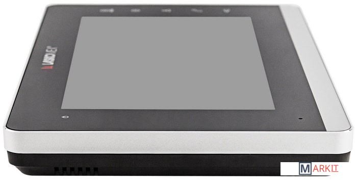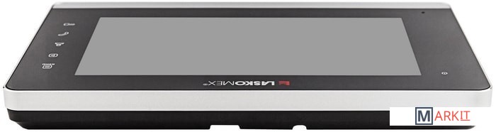 Монитор с металлической рамкой. Устройство поддерживает цифровые и координатные подъездные домофоны напрямую. Блок сопряжения в таком случае не требуется.