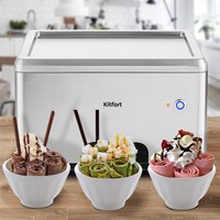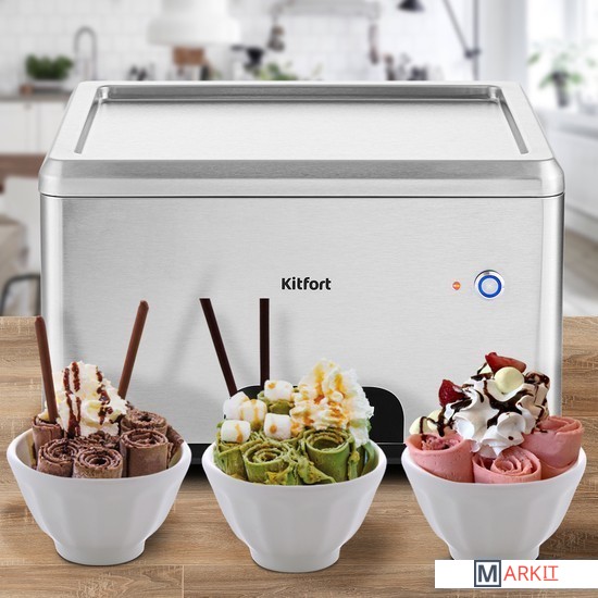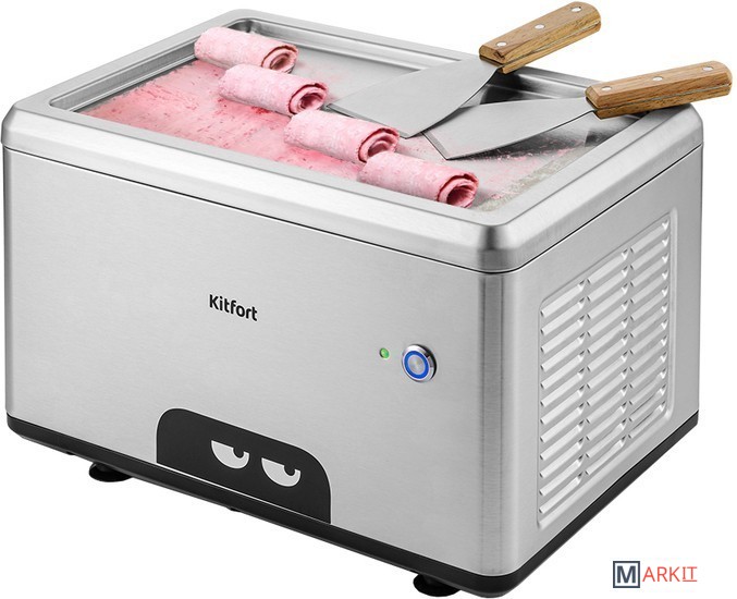 Мороженица со встроенным мощным компрессором КТ-1821 готовит «жареное» мороженое. Этот десерт получил свое название благодаря процессу приготовления, который напоминает жарку блинчика на сковородке, а сам процесс замораживания напоминает поджарку.