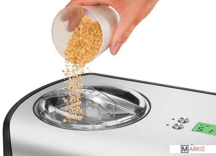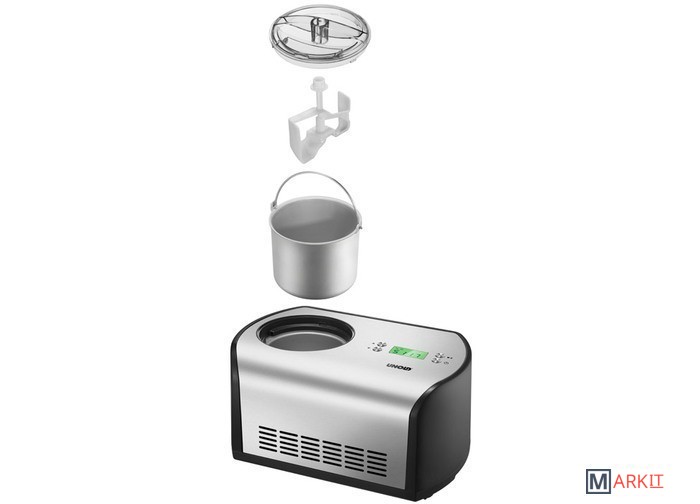 Замораживание благодаря встроенному компрессору- Цифровой таймер- Крышка для удобного добавления ингредиентов- ЖК-дисплей- Съемный контейнер с готовым мороженым