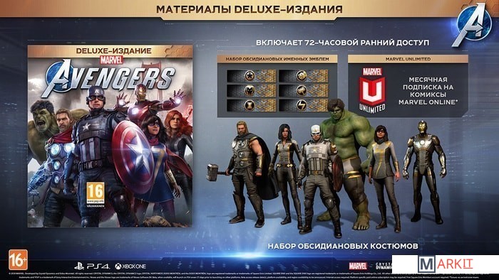 В Deluxe-издание игры «Мстители Marvel» входит эксклюзивный набор обсидиановых костюмов для Мстителей – Капитана Америка, Железного Человека, Черной Вдовы, Тора, Халка и Мисс Марвел, – а также шесть эксклюзивных обсидиановых именных табличек, которые стан / В Deluxe-издание игры «Мстители Marvel» входит эксклюзивный набор обсидиановых костюмов для Мстителей – Капитана Америка, Железного Человека, Черной Вдовы, Тора, Халка и Мисс Марвел, – а также шесть эксклюзивных обсидиановых именных табличек, которые стан / В Deluxe-издание игры «Мстители Marvel» входит эксклюзивный набор обсидиановых костюмов для Мстителей – Капитана Америка, Железного Человека, Черной Вдовы, Тора, Халка и Мисс Марвел, – а также шесть эксклюзивных обсидиановых именных табличек, которые стан / В Deluxe-издание игры «Мстители Marvel» входит эксклюзивный набор обсидиановых костюмов для Мстителей – Капитана Америка, Железного Человека, Черной Вдовы, Тора, Халка и Мисс Марвел, – а также шесть эксклюзивных обсидиановых именных табличек, которые стан / В Deluxe-издание игры «Мстители Marvel» входит эксклюзивный набор обсидиановых костюмов для Мстителей – Капитана Америка, Железного Человека, Черной Вдовы, Тора, Халка и Мисс Марвел, – а также шесть эксклюзивных обсидиановых именных табличек, которые стан / В Deluxe-издание игры «Мстители Marvel» входит эксклюзивный набор обсидиановых костюмов для Мстителей – Капитана Америка, Железного Человека, Черной Вдовы, Тора, Халка и Мисс Марвел, – а также шесть эксклюзивных обсидиановых именных табличек, которые стан
