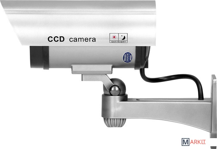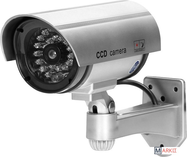 Макет выглядит как настоящая камера видеонаблюдения и имеет мигающий светодиод. Благодаря этому создается впечатление круглосуточного наблюдения Предназначен для внутренней и наружной установки.Товар не имеет электронные активные цепи. Питание от 2-х батареек формата AA, которые не входят в комплект.