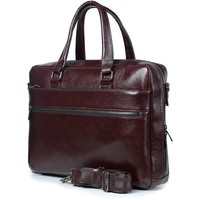 Элегантная деловая сумка в стильном исполнении из натуральной кожи. Модель декорирована черной фурнитурой, закрывается на молнию. Внутри центральная перегородка для ноутбука, остальные карманы для бумаг формата А4 и других документов. Имеется карман для авторучек. Лаконичная базовая модель отлично сочетается с деловым костюмом.