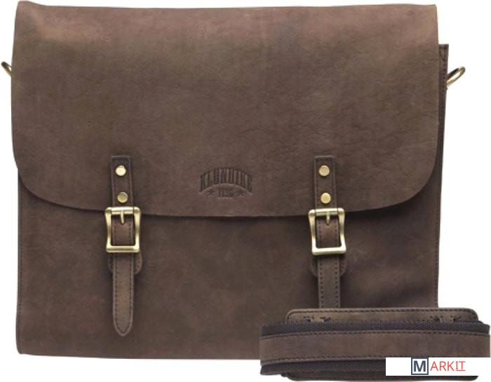 Высококачественная натуральная кожа в темно-коричневом цвете | Съемный ремень на плечо, мягкое отделение для ноутбука | Мужская сумка через плечоСумка через плечо «Бретт» фирмы «Klondike» отличается особенной элегантностью от остальных моделей коллекции мужских сумок «Klondike». Эта замечательная сумка из натуральной кожи пригодится на каждый день для университета, школы или работы.Сумка оснащена съемным регулируемым ремнем со смягченной частью для плеча, отделением на молнии, 2 вложениями для ручек и мягким отделением для ноутбука размером 32 х 24см.Элегантное тиснение «Klondike» на лицевой стороне и небольшое, ненавязчивое тиснение c надписью 'made with passion' на тыльной стороне, мастерски сделаны вручную на высочайшем уровне.Прочные металлические части латунного цвета подчеркивают высокое качество продукта. Благодаря своим размерам (длина – 38 см, высота – 33 см и глубина – 7 см) сумка позволяет хранить многочисленные вещи, например, большую папку и вещи схожего размера.Этот портфель гарантирует содержимому вашей сумки особую защиту благодаря высококачественному магнитному замку. Декоративная пряжка украшает внешний вид папки. Сумка на плечо фирмы «Klondike» – надежный компаньон на вашей стороне.