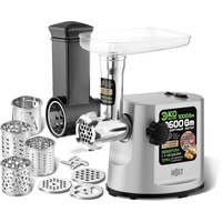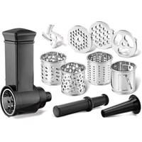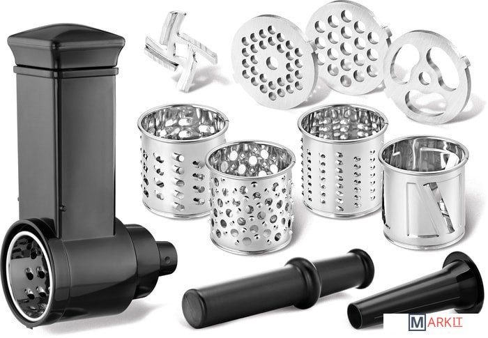 Аксессуары для мясорубки "насадка для домашней колбасы и 3 формовочных диска:диск для средней рубки,диск для крупной рубки,диск для рубленого мяса"Аксессуары для овощерезки "4 насадки:терка мелкая,терка крупная,терка для драников,терка для шинкования