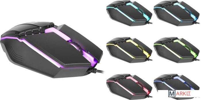7 цветов подсветки. Рифленое колесо прокрутки.