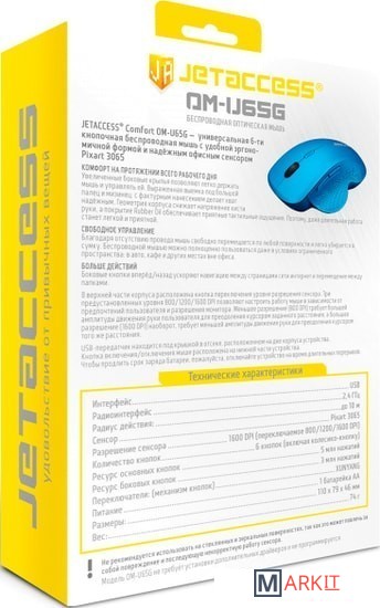 Comfort OM-U65G — универсальная 6-ти кнопочная беспроводная мышь с удобной эргономичной формой и офисным сенсором Pixart 3065.Увеличенные боковые крылья позволяют легко держать мышь и управлять ей. Выраженная выемка под большой палец и мизинец с фактурным нанесением делает хват надёжным. Геометрия корпуса снижает напряжение кисти руки, а покрытие Rubber Oil обеспечивает приятные тактильные ощущения. В верхней части корпуса расположена кнопка переключения уровня разрешения сенсора. Три предустановленных уровня 800/1200/1600 DPI позволяют настроить работу мыши в зависимости от предпочтений пользователя и разрешения монитора. Меньшее разрешение (800 DPI) требует большей амплитуды движения руки пользователя для преодоления курсором заданного расстояния, а большее разрешение (1600 DPI) наоборот, требует меньшей амплитуды движения руки для преодоления курсором того же расстояния.USB-передатчик находится под крышкой в отсеке, расположенном на дне корпуса устройства.Кнопка включения/отключения мыши расположена на нижней части устройства.Чтобы продлить срок заряда батареи, пожалуйста, отключайте устройство на время длительных перерывов.