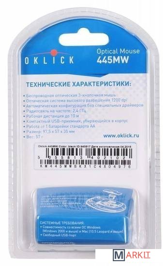 Markit » Компьютерные мыши » Мышь Oklick 445MW (черный) [945817]