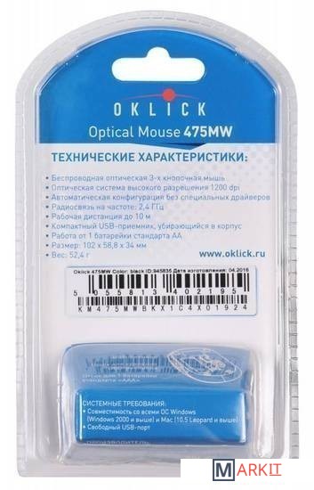 Markit » Компьютерные мыши » Мышь Oklick 475MW (черный) [945835]