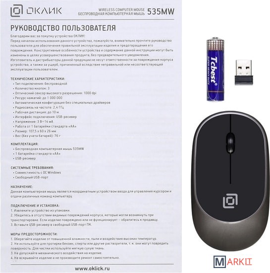 Markit » Компьютерные мыши » Мышь Oklick 535MW (черный/серый)