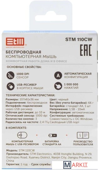 Markit » Компьютерные мыши » Мышь STM electronics 110CW