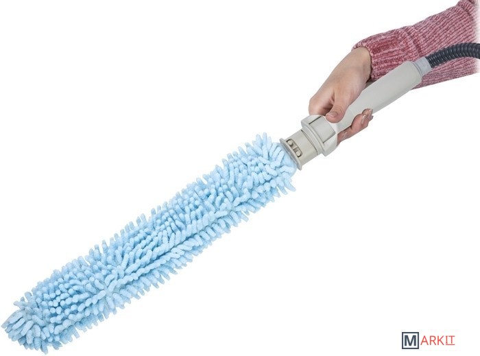 | Комплектация | 1. Съемный чехол из микрофибры с клиновидными волокнами.2. Гибкая насадка-распылитель.3. Гибкий шланг-удлинитель.4. Термоустойчивая защитная рукавица.5. Ремень для переноски отпаривателя/пароочистителя. |
