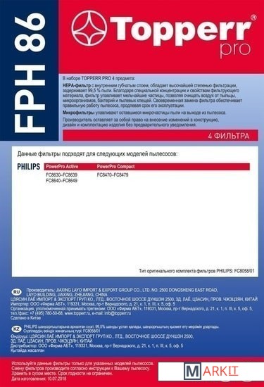Markit » Аксессуары для пылесосов, пароочистителей » Набор фильтров Topperr FPH 86