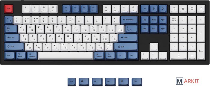 Markit » Игровые контроллеры и аксессуары » Набор кейкапов Keychron Q3 & Q4 & Q6 & V3 & V4 & V6 & K8 & K8 Pro OEM Dye-Sub PBT Russian-ANSI Blue JM-191