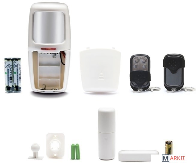 | Комплектация | Контрольная панель, датчик движения, дверной/оконный датчик, ПДУ, сирена, адаптер питания, руководства пользователя, гарантийный талон |