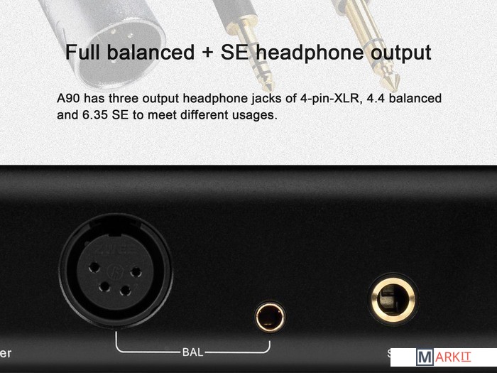 Выход на наушники 3  (балансный 4.4 мм, балансный 4-pin XLR, небалансный 6.3 мм)