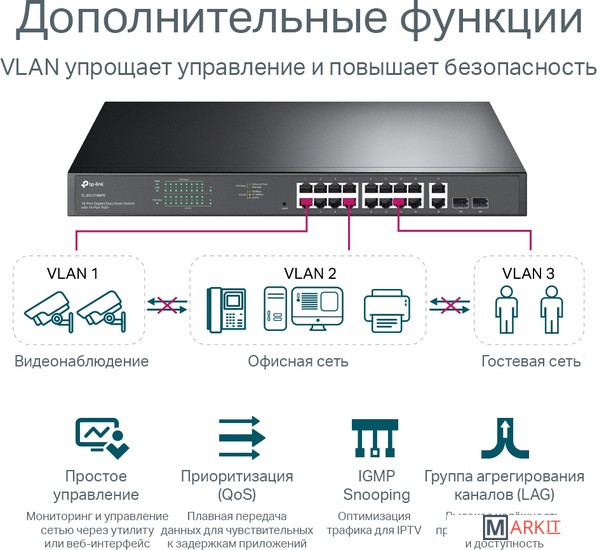 | QoS | 802.1p, DSCP/ToS, номер порта |