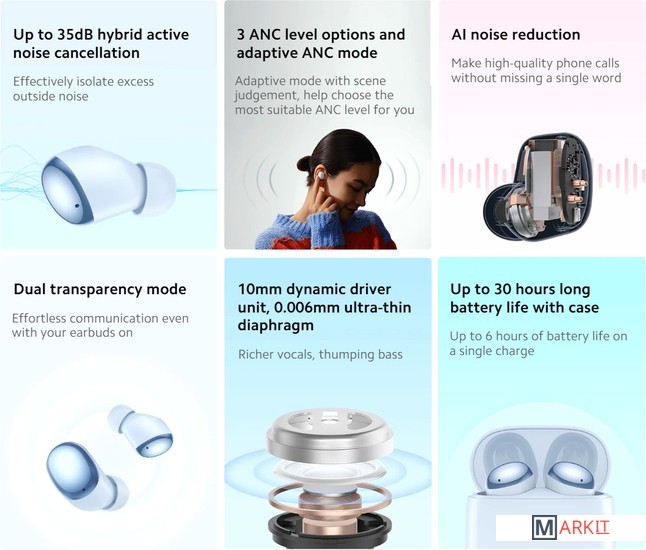 беспроводные, с микрофоном (гарнитура), вкладыши TWS, с активным шумоподавлением, для смартфона, с влагозащитой |