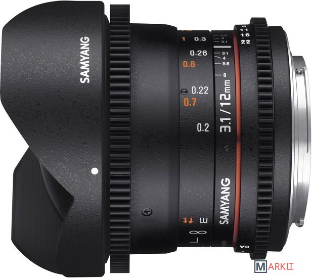 Широкоугольный объектив с ручной фокусировкой Samyang 12 mm T 3,8 ED AS NCS VDSLR предназначен для полноразмерных цифровых фотоаппаратов. Сделан специально для использования с механизмами видеосъёмки цифровыми зеркальными фотоаппаратами.