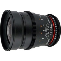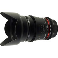 Широкоугольный объектив с ручной фокусировкой Samyang 35 mm T 1,5 ED AS UMC VDSLR предназначен для полноразмерных цифровых фотоаппаратов. Сделан специально для использования с механизмами видеосъёмки цифровыми зеркальными фотоаппаратами. На корпусе объектива нанесена шкала дистанции и диафрагмы с поворотом на 90 градусов. Фокусировочное кольцо и кольцо диафрагмы имеет специальную зубчатую передачу и плавный ход. Объектив выполнен в надежном и качественном корпусе из металла и пластика с металлическим байонетом.