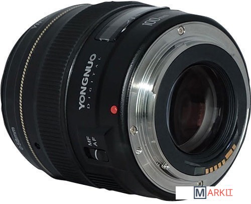 Объектив от компании Yongnuo для камер Canon. Объектив совместим как с полнокадровыми камерами, так и сенсором формата APS-C. В объективе присутствует мотор для автофокусировки и переключатель режимов ручной и автофокусировки. В объекте есть механическая шкала фокусировки и маркировка, помогающая определять глубину резкости. Оптические элементы имеют многослойное просветление для подавления бликов и переотражений.
