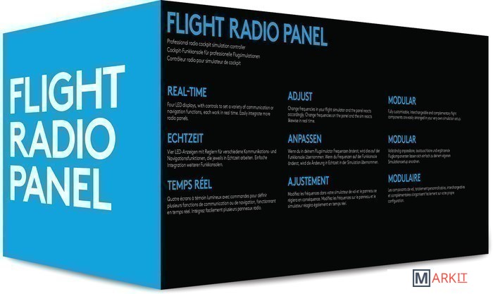 Панель Flight Radio Panel представляет собой комплект из четырех ЖК-дисплеев, предназначенных для выполнения разнообразных задач, касающихся связи и навигации. Прошли времена, когда пилоту необходимо было постоянно смотреть на экран, следя за частотами ресиверов COM1/COM2 и приемников NAV1/NAV2, за показателями радиодальномера, пеленгатора и транспондера. Все дисплеи могут работать с симуляторами FSX, X-Plane и Prepar3D в режиме реального времени. Виртуальную кабину пилота или домашнюю летную систему можно без труда оснастить панелью Radio Panel. Имеется возможность использовать несколько панелей одновременно.