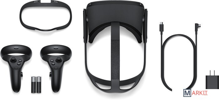 | Комплектация | • Гарнитура Oculus Quest• Два контроллера Touch• Адаптер питания 15 Вт• Батареи АА• Проставка для очков |