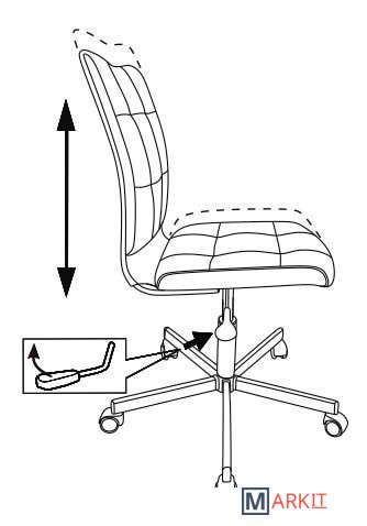 Колеса оснащены тормозом безопасности, реагирующим на изменение давления: стул не откатывается, когда вы садитесь или встаете.