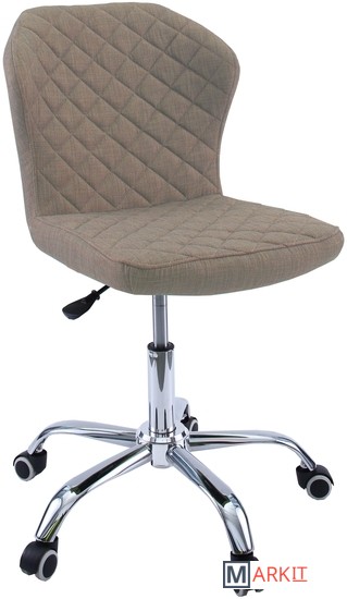 Обивка - ткань Elain (рогожка). Это очень прочная ткань с характерным шахматным двойным или тройным переплетением нитей (разновидность шенилловых тканей). Также практически не мнётся благодаря упругости; держит форму, не растягивается и не деформируется.Материалы:крестовина - хромированный металл;ролики - мягкие (не царапают и не протирают напольное покрытие) PU, 50 мм/ 11 мм;газлифт - класс 2, ход 140 мм;механизм - пиастра с регулировкой по высоте сидения.