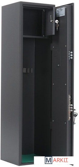 Предназначен для хранения огнестрельного оружия.- толщина металла корпуса и двери – до 2 мм- оборудован патронным отделением, запирающимся на ключ, полками и ложементами для ружей- комплектуется кодовым электронным замком PLS-3.2 (Промет) + ключевым замком- максимальная высота ствола 977 мм- конструкция патронного отделения позволяет размещать оружие, задействуя всю высоту сейфа- наличие анкерных отверстий для крепления сейфа к стене
