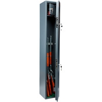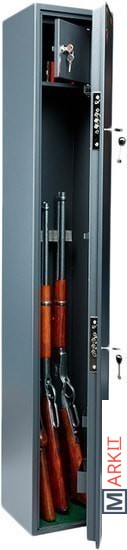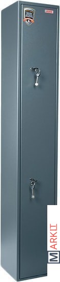 Предназначен для хранения огнестрельного оружия. - толщина металла корпуса и двери – до 2 мм- оборудован патронным отделением, запирающимся на ключ, полками и ложементами для ружей- комплектуется двумя ключевыми замками- максимальная высота ствола 1376 мм- наличие анкерных отверстий для крепления сейфа к стене