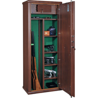 Бронированный оружейный сейф идеально подойдет охотнику или коллекционеру. Великолепная отделка сейфа под натуральное дерево, украсит любой кабинет, квартиру, офис и обеспечит реальную защиту ваших ценностей. Надежный электронный кодовый замок дополнительно защищен броненакладкой от высверливания, а ригельный механизм замка блокирует дверь сейфа с трех сторон.
