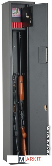 Шкаф односекционный соответствует всем требованиям МВД России. Корпус шкафа толщиной 1 мм, дверь толщиной 1 мм. На задней стенке корпуса расположены отверстия для крепления. Оружейный шкаф на 2 ствола оснащен отделением под патроны. Ложементы — пластик. В дверь установлены 1 замок типа «Cam-Lock» и 1 ключевой сувальдный замок ЗАО «Про-Сам» г. Рязань или аналогичный замок другого производителя.