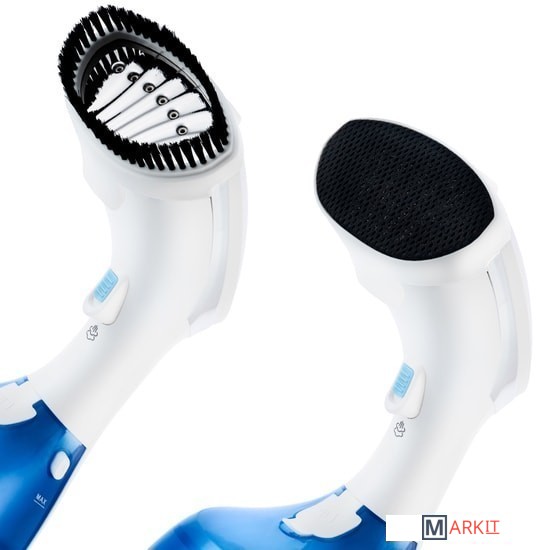 В комплект входят две насадки для отпаривателя: тканевая и ворсовая. Ворсовая щётка отлично подойдёт для очистки одежды от шерсти домашних животных, а также для чистки мебели. Тканевая щётка используется при разглаживании одежды из деликатных тканей.Резервуар для воды оборудован специальным широким отверстием для залива воды внутрь отпаривателя. Оно защищено прорезиненной крышкой, чтобы вода не вытекла при работе отпаривателя.Резервуар для воды у отпаривателя съёмный, поэтому он легко наполняется водой и устанавливается в корпус устройства. Вода из резервуара подаётся в бойлер помпой (водяным насосом), что позволяет получать устойчивую подачу пара.