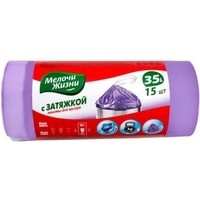 Пакеты для мусора Мелочи Жизни Стандарт c затяжкой (35 л, 15 шт, фиолетовый) Код: 502073