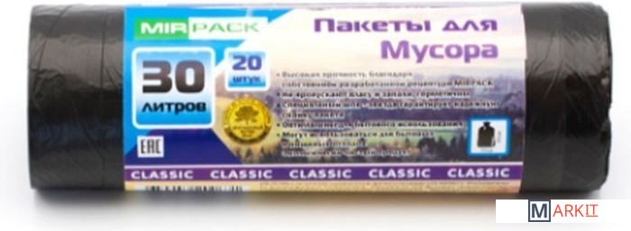 Markit » Пакеты для мусора » Пакеты для мусора Mirpack Classic 6 мкм 30 л (20 шт)