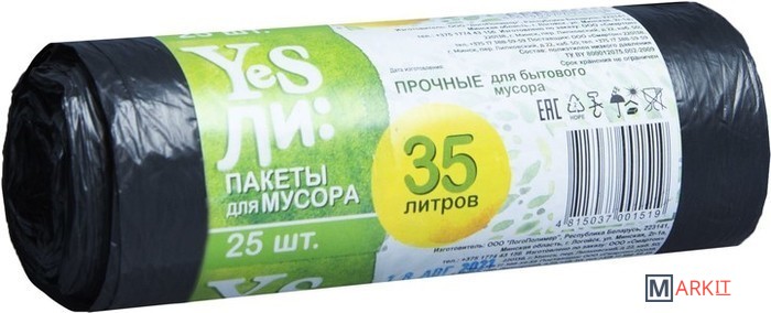 Markit » Пакеты для мусора » Пакеты для мусора Yesли 6 мкм 35 л (25 шт)