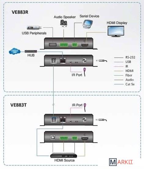 VE883RK2-AT-G – Приемник Оптического Удлинителя ATEN VE883, 4K HDMI Optical Extender (4K@10км (K2, SM)), предназначенный для расширения расстояния передачи несжатого 4K-сигнала до 10 километров.Удлинитель VE883 соответствует спецификациям HDMI, поддерживая функции 3D, Deep Color (до 12 бит) и скорость передачи данных до 10,2 Гбит/с, обеспечивая превосходное качество изображения. Благодаря эксклюзивной технологии FarSmooth компании ATEN удлинитель VE883 предотвращает запаздывание и замирание изображения, выравнивая скорость входящего и исходящего потока. Это гарантирует стабильный, плавный и идентичный с источником видеовывод, что особенно важно при использовании на больших расстояниях, где требуются непрерывность видеопотоков. VE883 оснащен HDMI-входом и выходом, аналоговым аудиовходом и выходом, портом USB2.0, двунаправленным ИК-портом, управляющим портом RS-232, а также портом для подключения Gigabit Ethernet. Для соединения по схеме «точка-точка» (point-to-point) к удлинителю VE883 может быть подключен волоконно-оптический кабель, при установке модулей SFP+ в его оптический порт.Используя дуплексное оптическое волокно совместно с удлинителем VE883, можно получить простое и быстрое решение для оптимальной передачи сигналов Ethernet, ИК, HDMI, RS-232 и USB на расстояние до 10 километров, одновременно избежав нагромождения кабелей. Обеспечивая прозрачную передачу USB-сигналов, удлинитель VE883 является совместимым с широким диапазоном периферийных USB-устройств.При разработке удлинителя VE883 учтены новейшие тенденции в увеличении расстояния и передаче без потерь 4K-сигнала. Поэтому он подходит для применений, где требуется большая дистанция и при этом допускаются небольшие помехи, таких как транспортные станции и современные офисные здания.