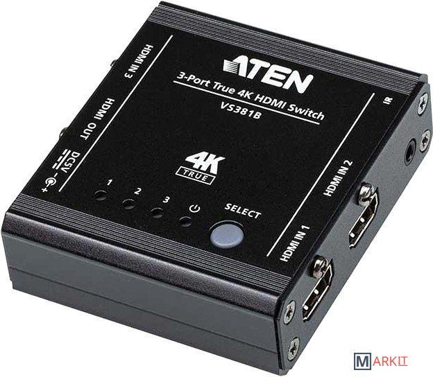 Трехпортовый коммутатор HDMI True 4K с автоматическим переключением VS381B позволяет переключать 3 источника входного сигнала HDMI на дисплей HDMI. Он поддерживает разрешение видео до True 4K (4096x2160 при 60 Гц, 4:4:4), скорость передачи данных до 18 Гбит/с, форматы HDR, 3D, Deep Color и HD без потерь. Кроме того, VS381B предлагает методы переключения между источниками HDMI с помощью кнопок на передней панели и ИК-пульта дистанционного управления, что позволяет пользователям легко выбирать желаемый вход.Основные особенности:- позволяет передавать до 3 источников входного сигнала HDMI на 1 выходной дисплей HDMI- HDMI (3D, Deep Color, 4K, HDR10 +, Dolby Vision, HLG)- совместимость с HDCP 2.2- режим автоматического переключения для автоматического выбора порта- переключение между источниками входного сигнала HDMI с помощью кнопок на передней панели и ИК-пульта дистанционного управления- поддерживает расширение IR- поддерживает 7.1-канальный аудиовыход- четкая светодиодная индикация состояния устройства- plug-and-play - установка программного обеспечения не требуется
