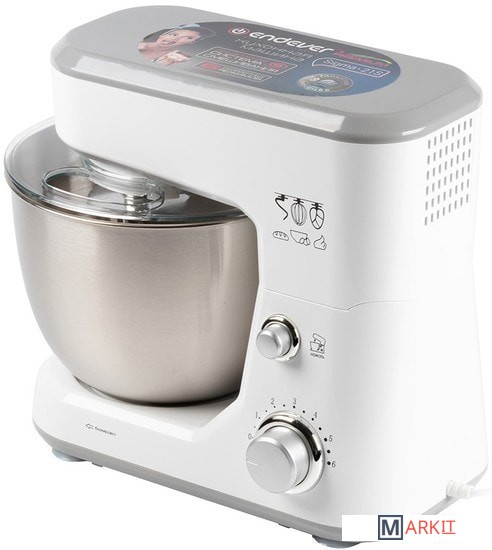 Планетарный миксер.Съемная чаша с крышкой.Насадка для перемешивания.Крюк для теста.Венчик для взбивания.Лопатка кулинарная.Руководство по эксплуатации.Гарантийный талон.
