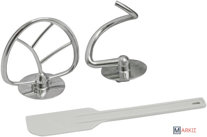 Полная комплектация Насадка-венчик.Насадка для смешивания.Крюк для теста.Лопатка.Защитная крышка для чаши.