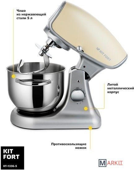 Markit » Кухонные комбайны, машины и планетарные миксеры » Планетарный миксер Kitfort KT-1336-5 (бежевый)