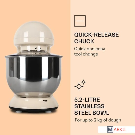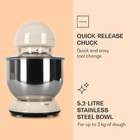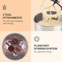 Кухонный комбайн, чаша из нержавеющей стали, крючок для замеса, смеситель, взбиватель для пены, руководство пользователя на немецком и английском языках