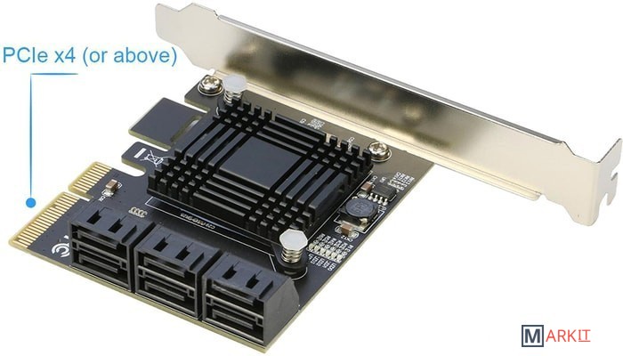 Разъемы SATA, PCI Express  (PCI-e x4 3.0 -> 6x SATA 3)
