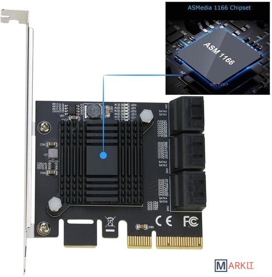 6 внутренних портов AHCI SATA 3.0 6Gb/sЧип: ASMedia ASM1166Подключение: шина PCI-Express x4 v3.0Соответствует спецификации PCI-Express v3.0, обратно совместим с PCI-Express v2.0Совместимость со спецификацией Serial ATA 3.0, обратная совместимость с SATAII, SATAПоддерживает скорость передачи данных 6 Гбит/с, 3 Гбит/с и 1.5 Гбит/сПоддерживает Native Command Queuing (NCQ)Поддерживает S.M.A.R.T.Поддерживает TRIMПоддерживает DevSleepПоддерживает горячее подключение (Hot Swap)Поддержка ОС: Windows 10/8/7/Vista/XP, Linux