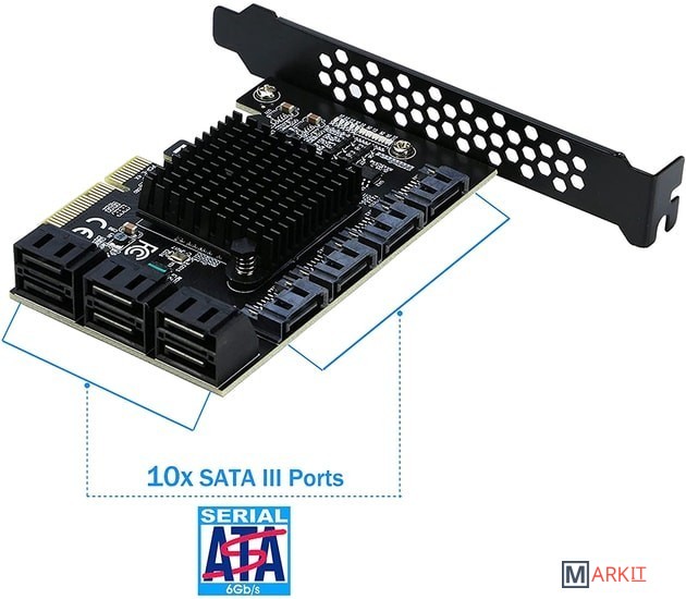 | Разъемы | SATA, PCI Express (PCI-e x4 3.0 -> 10x SATA 3) |