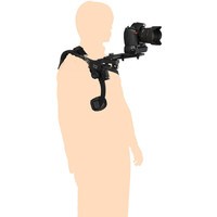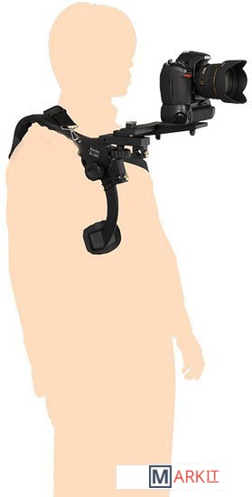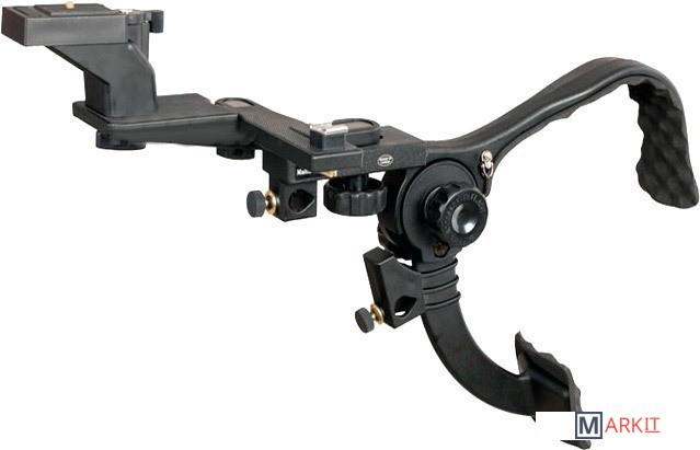 Легкий, компактный (в сложенном положении) наплечный штатив для фото и видеосъемки. Благодаря использованию жесткого и прочного инженерного пластика, металлических осей, в статике он выдерживает нагрузку до 5 кг. Однако, с учетом рывков и толчков, возникающих при съемке в движении, его не рекомендуется использовать с аппаратурой весом более 1,5 кг.Конструкция представляет из себя «коромысло» — задняя часть которого является наплечником с мягкой резиновой вставкой, а передняя — несущей площадкой для крепления подвижного узла с установочным местом для камеры и осветителя (микрофона).Этот подвижный узел может поворачиваться в пределах 180 градусов, а также передвигаться вдоль по несущей площадке «коромысла» в пределах 25 мм. Выбранное положение фиксируется нижним прижимным винтом.