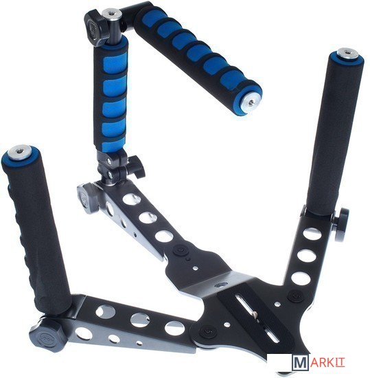 Многофункциональное устройство, которое в различных конфигурациях можно использовать, как наплечный штатив, плечевой упор, «клетку» для съемки с нижней точки и т. д. Основа конструкции сделана из стали, окрашенной порошковой эмалью, с перфорацией для облегчения веса.
