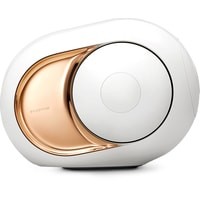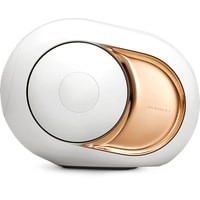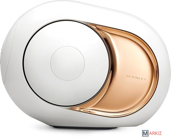 Gold является старшей колонкой в линейке Phantom и имеет ту же футуристичную форму. Колонка выполнена в пластиковом корпусе с 22-каратным золотым покрытием по бокам. Внутри нее титановый твитер и гибридный усилитель мощностью 4500 Вт. Active Cospherical Engine (ACE) – шарообразная форма, которая обеспечивает минимум резонансов в работе и правильное рассеивание звука.Низкочастотные динамики по поршневому принципу с силой в 300 Н создают то, что в Devialet назвали Heart Bass Implosion (HBI) – уникальный ультра-плотный звук с физическим воздействием.Система также использует звуковые усилители Analog Digital Hybrid, которые совмещают отличное качество звука класса A и высокий КПД класса D. Также есть Speaker Active Matching (SAM) – технология, разработанная для точного воспроизведения студийного звука.Gold Phantom - беспроводная колонка с управлением по Wi-Fi с помощью фирменного приложения. Музыку играет как с телефона, так и со стриминговых сервисов. По Bluetooth к ней тоже можно подключиться, и, как каждая современная беспроводная аудиосистема, Gold способен работать в режиме стереопары, если неподалеку окажется еще одна такая же колонка. Но стереопарой сетевые возможности не ограничиваются: соединить между собой можно до восьми колонок.