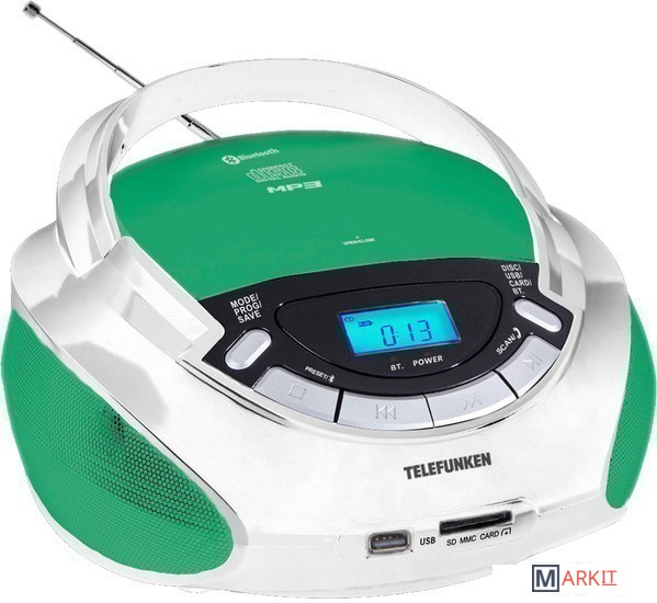 Markit » Бумбоксы и магнитолы » Портативная аудиосистема TELEFUNKEN TF-CSRP3492B (белый/зеленый)