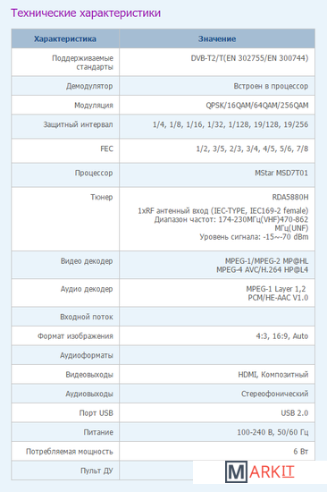 | Стандарт | DVB-T, DVB-T2 |